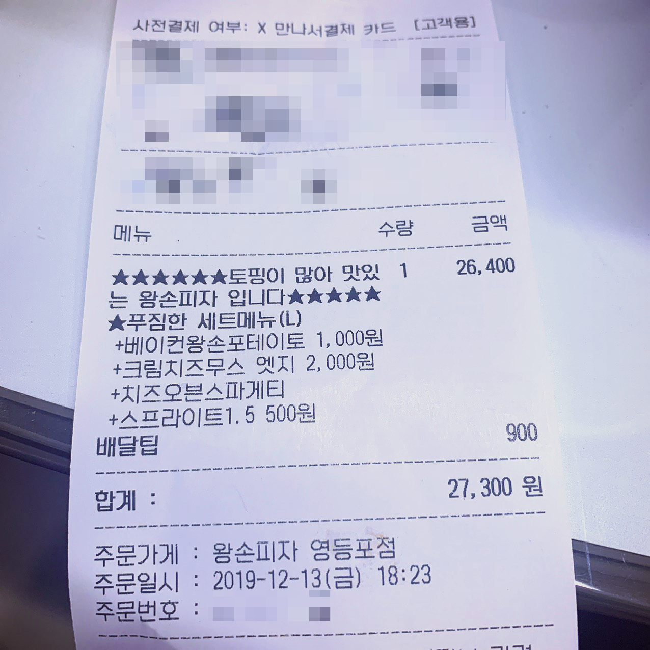 양평동은 배달비 900원 추가