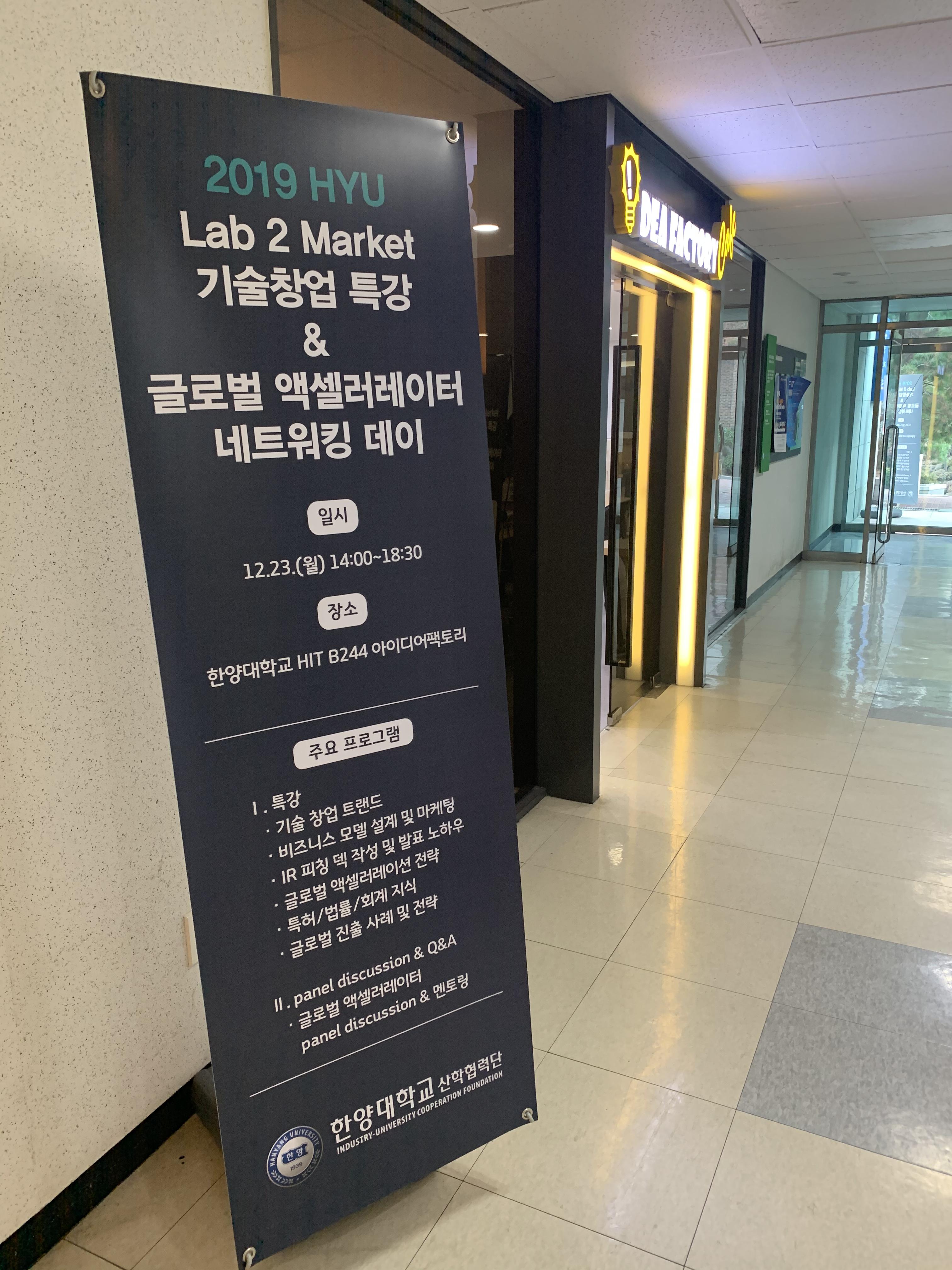 한양대학교 한양종합기술원 (HIT) B2F 아이디어팩토리에서 열린 산학협력단 기술사업화센터 주관의 기술창업 특별강의