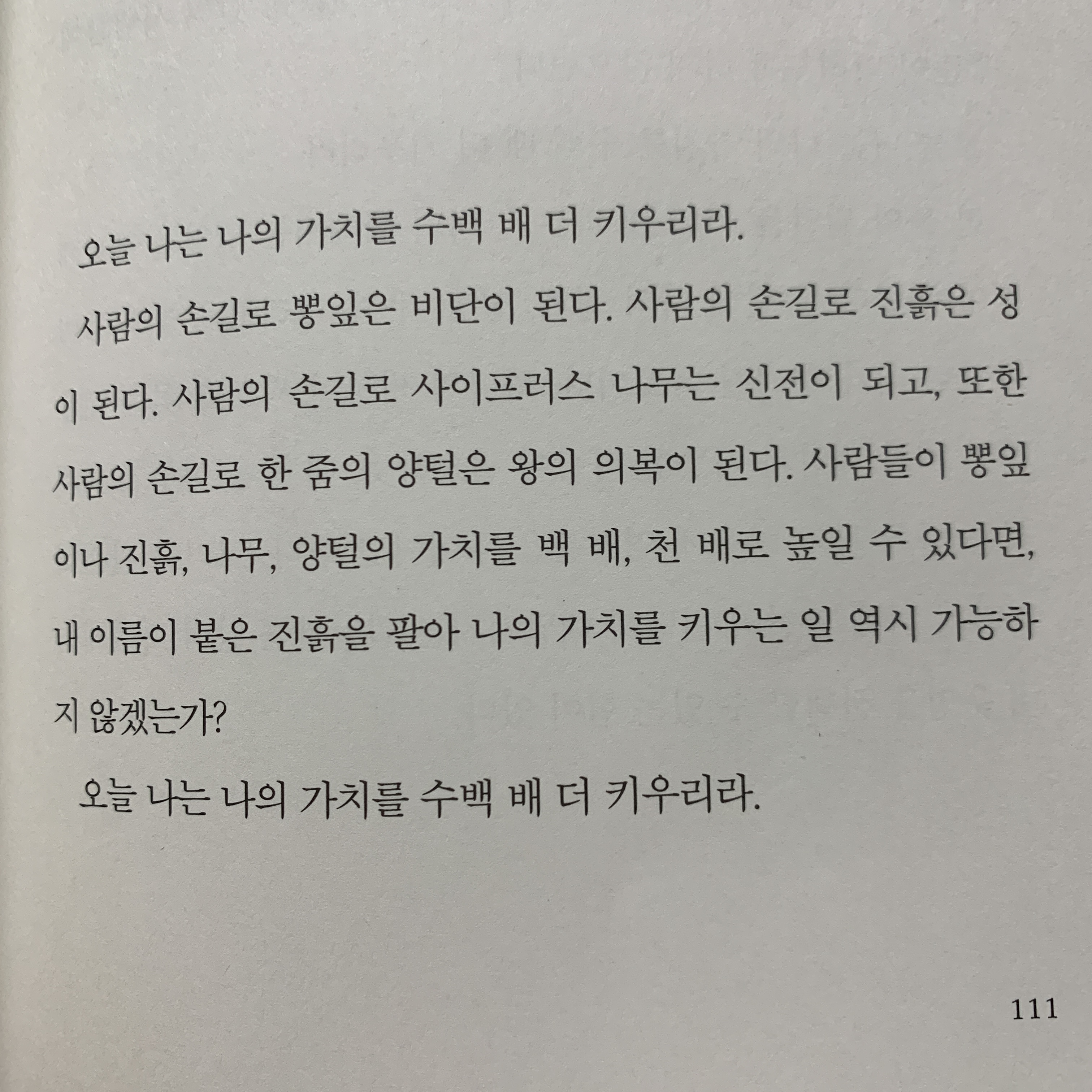 그런데 정녕 오늘이 마지막 날이 아니라면, 나는 무릎을 꿇고 감사하리라.