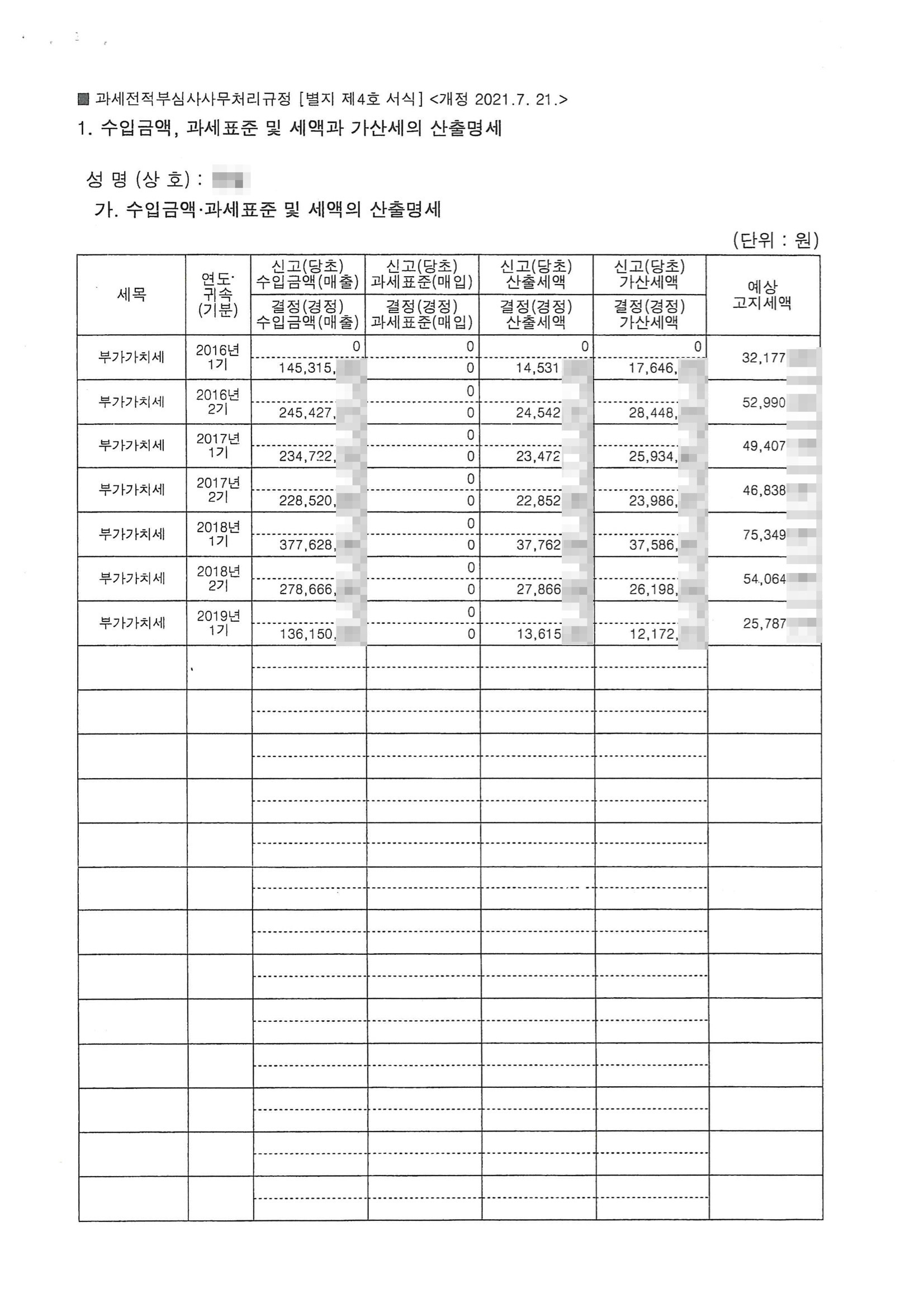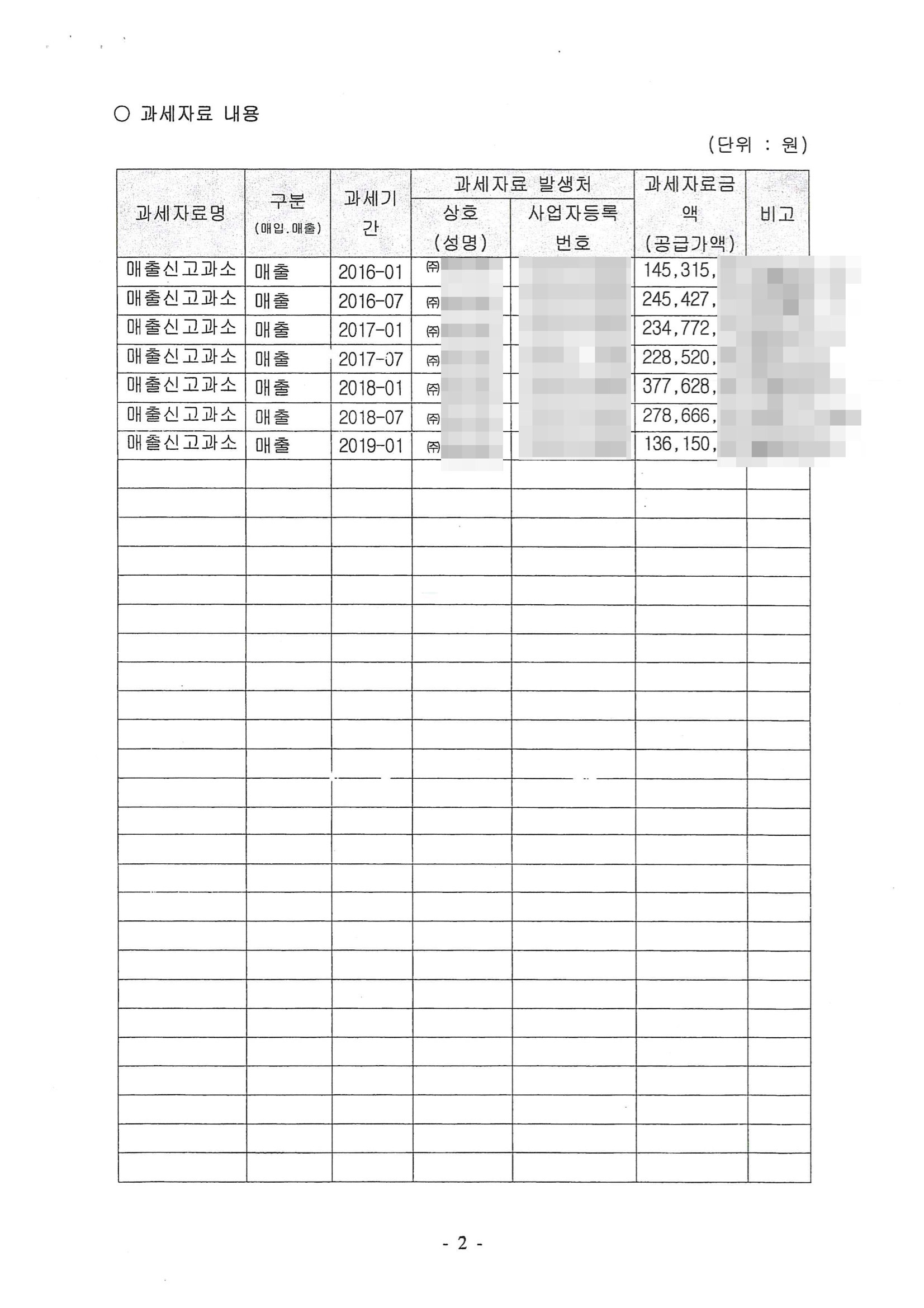 매출 누락 및 사업자미등록가산세, 세금계산서미발급가산세, 부당무신고가산세, 납부불성실가산세 등