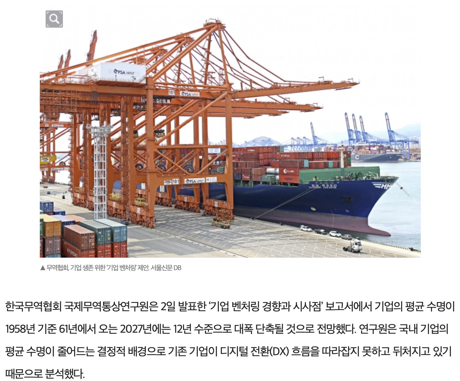 기업의 평균 수명은 지속적으로 감소하고 있음.